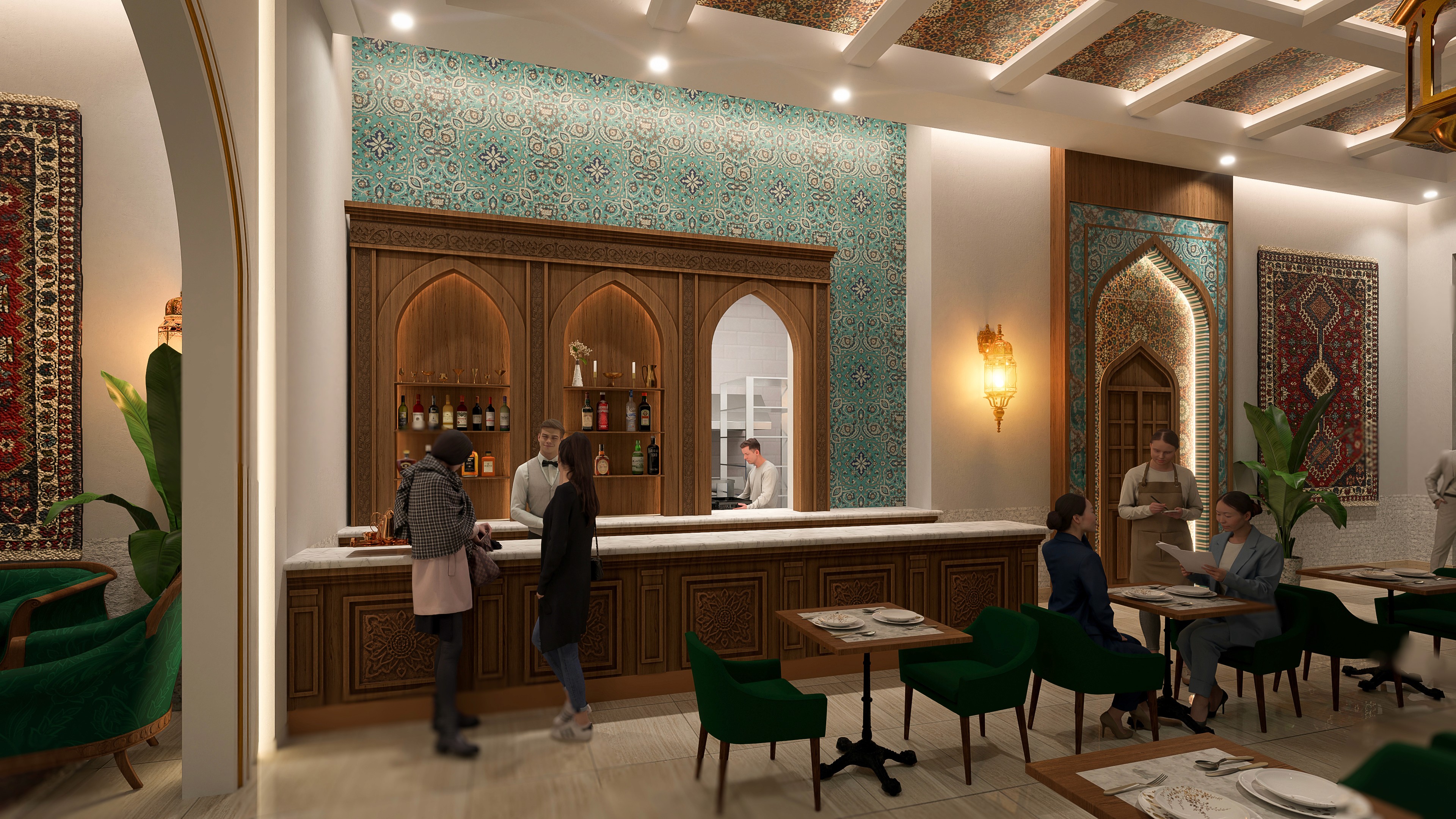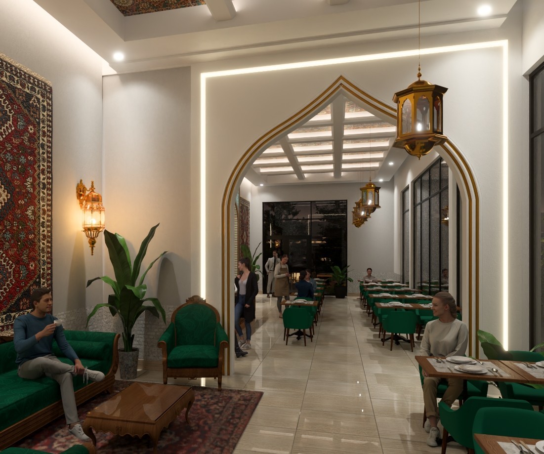 This location within the Global Street project serves as a bridge between the regal history of ancient Persia and the vibrant pulse of contemporary dining. The space is anchored by a celebration of intricate artistry, featuring soaring arched doorways, elaborate mosaic tiling, and traditional Persian carpets that bring warmth and soul to the high-ceilinged urban environment. It honors the Iranian philosophy of "Taarof"—a deep-rooted culture of hospitality and respect—reimagining it for a global audience by blending palace-like architectural details with a modern, communal street energy.