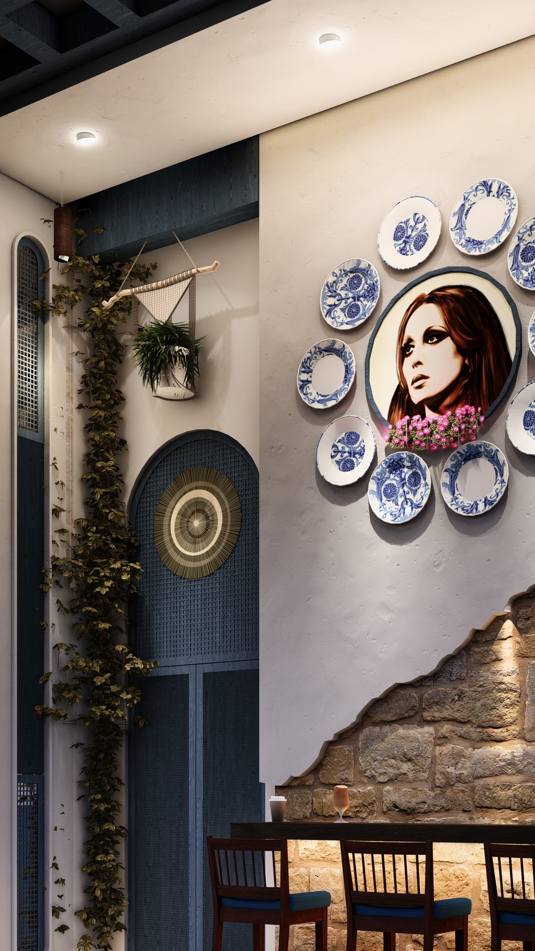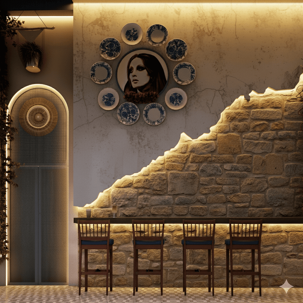 The atmosphere is light, airy, and constantly in motion, designed to feel like a high-energy garden party where food and design converge. The air is filled with the scent of lemon-zested salads like Tabuleh, Fatoush, and Rocca Purslane Beet Root. Open-service counters allow guests to watch the rhythmic preparation of Mezze plates, from the creamy swirl of Hummus Beiruti to the artisanal plating of Moutabbal and Vine Leaves. It is a space where the "Global Street" DNA feels most vibrant, mirroring the world-renowned hospitality of Beirut.